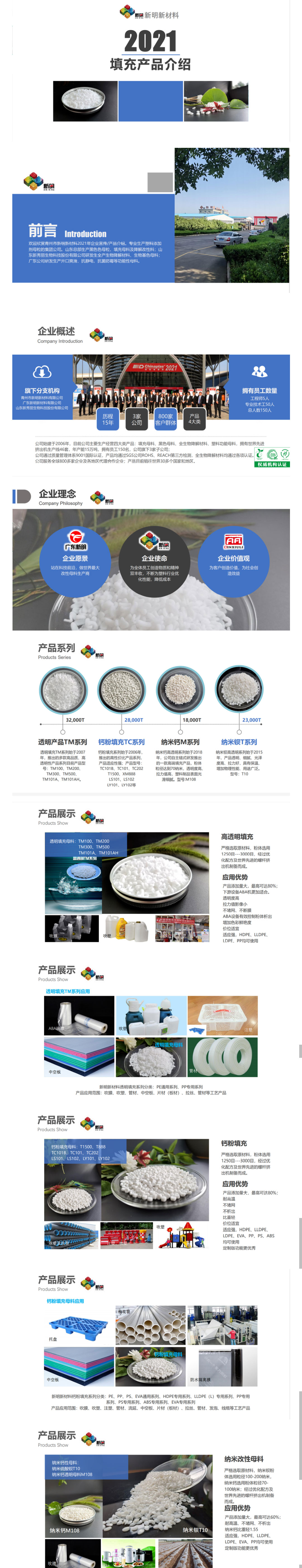 新明新材料有限公司,是一個(gè)專(zhuān)業(yè)生產(chǎn)塑料添加劑母粒的集團(tuán)公司。山東總部生產(chǎn)色母粒、生物降解材料、填充母料及降解改性料;山東新秀麗主要生產(chǎn)生物降解材料生物降解色母料塑料黑色母料;廣東公司研發(fā)生產(chǎn)開(kāi)口爽滑、抗老化、抗靜電、抗菌防霉等功能性母料,下屬振熙助劑公司從事助劑貿(mào)易多年,在塑料改性及助劑應(yīng)用方面有豐富的實(shí)踐經(jīng)驗(yàn)。新明新材料產(chǎn)品廣泛應(yīng)用于食品包裝、玩具、塑料管道、工程塑料、塑料家居用品、個(gè)人護(hù)理材料、日用輕工、農(nóng)業(yè)等多個(gè)領(lǐng)域成。憑借多年積淀的經(jīng)驗(yàn)、借助先進(jìn)的技術(shù)和完善的管理體系,公司已為國(guó)內(nèi)外眾多客戶提供聚合體的著色和改性全系列一體化解決方案。